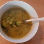 Na een ijverige middag in mijn huisje was het tijd voor de 2e maaltijd rond half 4 een kopje zelfgemaakte courgette broccolisoep met een bloepje lactofree room. Gevolgd door een runderstoofpotje met paddenstoelen uit de slowcoocker bij een courgette pasta die slechts heel even mee opwarmt in de stoof zodat de knisperende bite behouden blijft. Nog een restje bonen-tonijnsalade erbij.