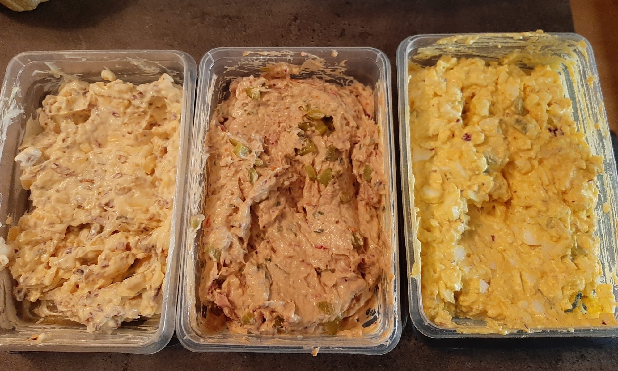 En in die keuken heb ik lekkerrrr salades gemaakt van een echte oude kaas, uitje, augurkje rode ui, walnoten en mosterdmayo erdoor.